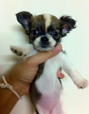 ขายน้องชิวาวาเพศเมีย ขนยาว สีขาวน้ำตาล ราคาถูกคับ