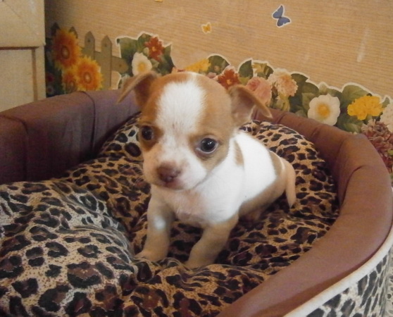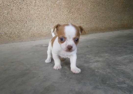ขายลูกชิวาวา ขนสั้น พันธุ์แท้ สีแฟนซี ขาว-น้ำตาล