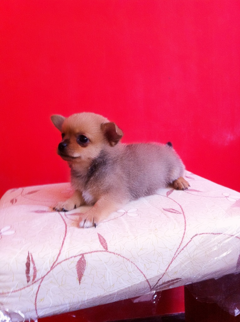 Chihuahua's short hair, medium sized male brown face Doraemon only 4,900 Baht only. We are happy to send to friends who are in Bangkok for me but for my friends in the provinces. We are sent by air. By increasing the fee is 500 Baht per cage for the price include up to it.