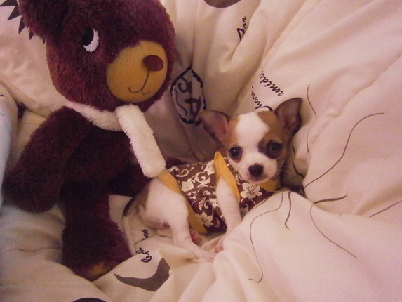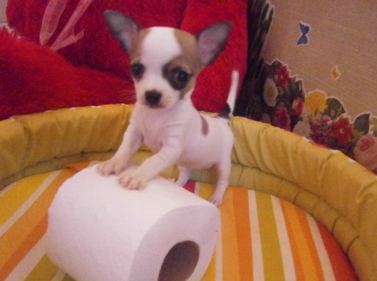 ขายชิวาวา พันธุ์แท้ ขนสั้น สีแฟนซี ขาว-น้ำตาล ตัวเล็ก น่ารัก^^