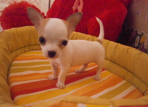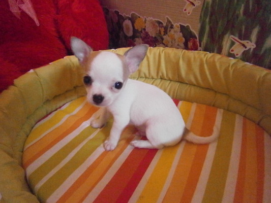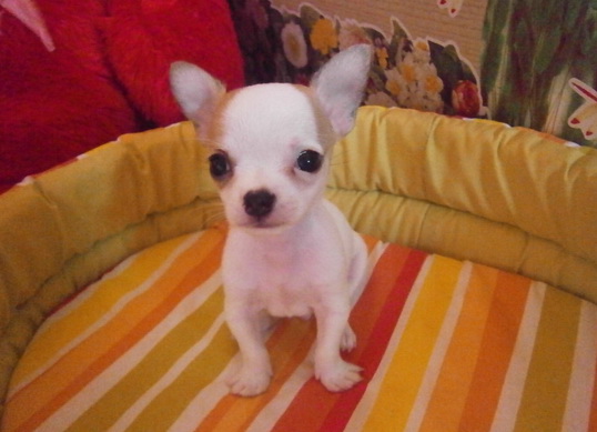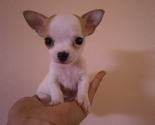 ขายลูกชิวาวา ขนสั้น พันธุ์แท้ สีขาว มาร์คน้ำตาล ไซค์เล็ก