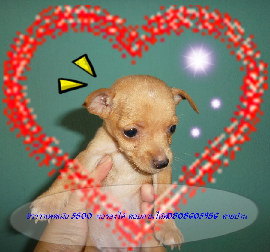 [color=blue][size=18pt][font=trebuchet ms]ขายน้องชิวาวาขนสั้น ผู้1 เมีย 2 น้องๆเป็นชิวาวาสายเก่า ไซด์เล็ก หนักแค่ 4 ขีดครึ่ง เอง น้องๆอายุ2เดือน ถ่ายพยาธิแล้ว สุขภาพแข็งแรงสมบูรณ์คร้า ขายน้องในราคา 3500 ไม่รวมค่าส่ง (มีบริการส่งทางเครื่องบิน) ค่าจัดส่ง500 บาทคร้า มารับเองที่บ้านลดได้อีกคร้า :Dสนใจสอบถามได้ที่ 0808603956 สายป่านตลอด 24 ชม. หรือทาง facebook saipan pomping :) สนใจจริงๆคุยกันก่อนได้คร้าราคาไม่ใช่ปัญหาคร้า ::)[/font][/size][/color]