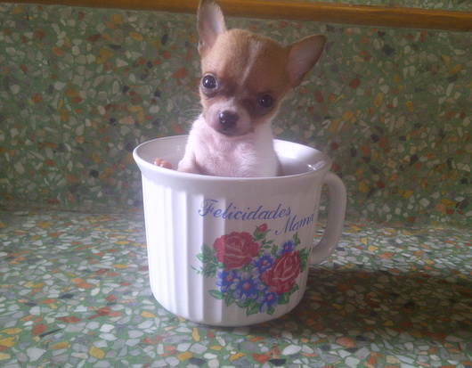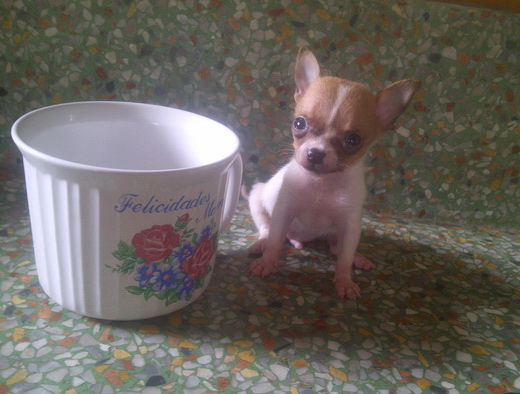 ขายลูกชิวาวา ขนสั้น ไซค์เล็กทีคัพ สีขาวมาร์คน้ำตาล หัวแอ็ปเปิ้ล