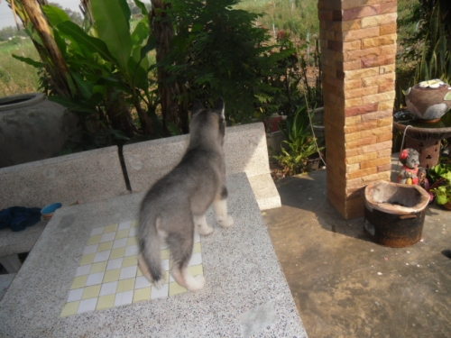 ลูกไซบีเรียนเพศเมีย สีขาวเทา ตาสีฟ้า 1 ข้าง ราคา 10500