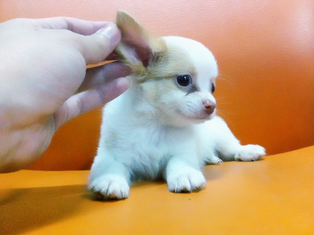 ชิวาวาเพศผู้ขนยาวสีขาวแฟนซีไซด์เล็กครับ