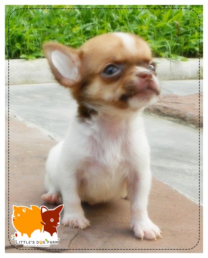 ชิวาวาขนสองชั้นเพศผู้ สีแฟนซี ขาว-น้ำตาล