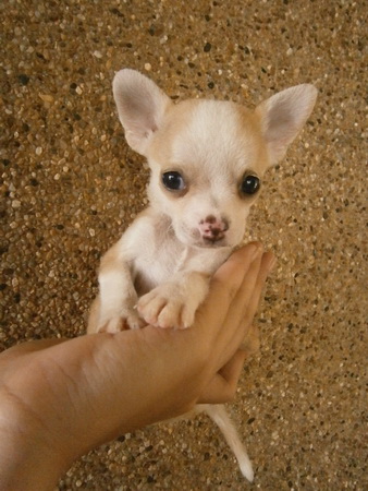 ขายลูกชิวาวา ขนสั้น ไซค์เล็ก หัวแอ็ปเปิ้ล สีขาว-ครีม น่าตาน่ารัก ^^