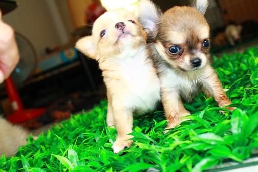 ชิวาวา ขนยาว วัย 56 วัน เมีย1 ผู้ 1 สี แฟนซี สีครีม ขาว และ น้ำตาลแทน size จิ๋ว น้ำหนักประมาณ 3 ขีดต่อตัว