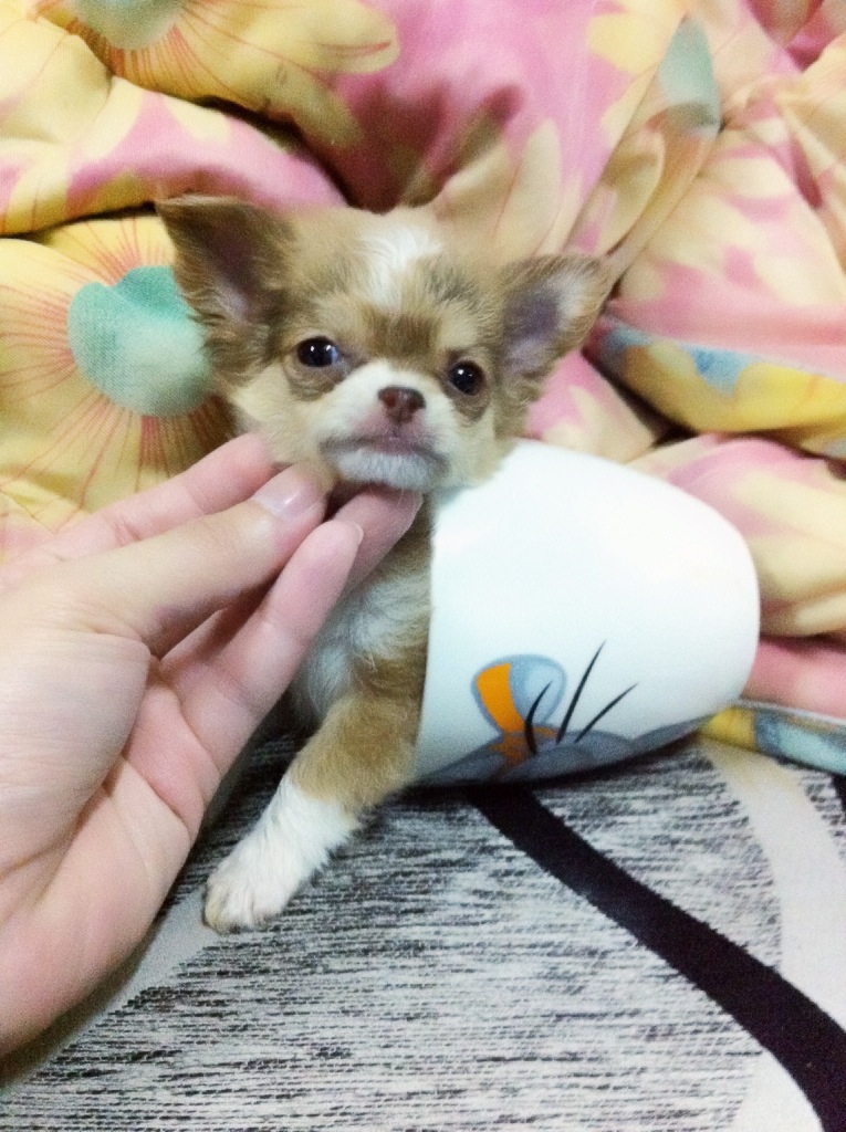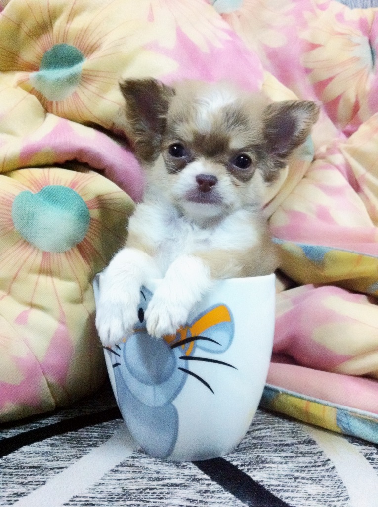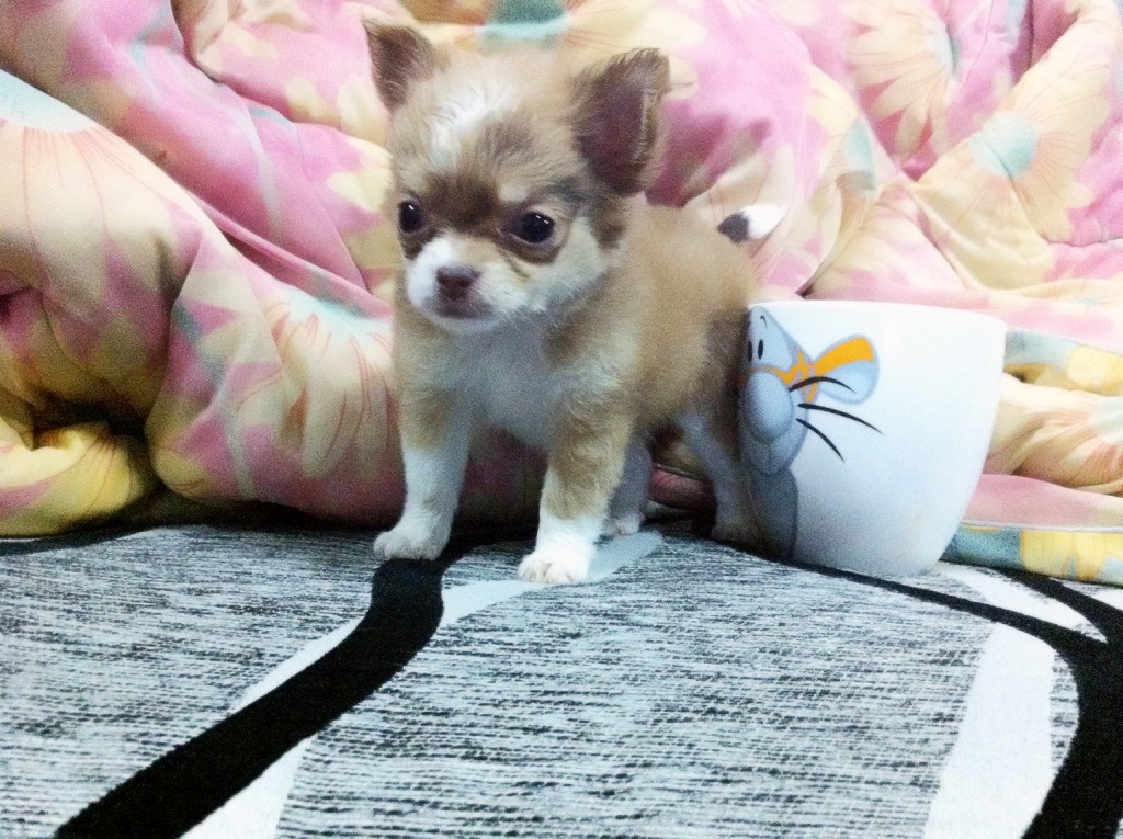 ชิวาวาขนยาวเพศเมียน่ารักสีสวยฟอร์มสวยทานเก่งอายุ 50 กว่าวันแล้วทานอาหารเม็ดได้แล้วย้ายบ้านได้แล้ว