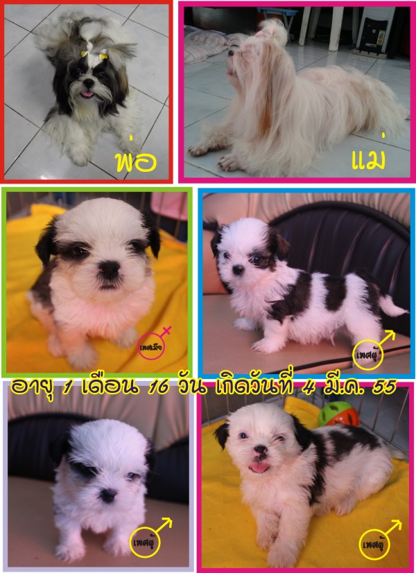 ขายลูกชิสุห์ เพศเมีย 1 ตัว เพศผู้ 3 ตัว น่ารัก ขี้เล่น แข็งแรง ราคาพิเศษสำหรับคนรักสุนัข 2000 บาท สนใจติดต่อ 082-7795052 ค่ะ