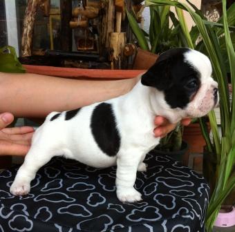 French bulldog เพศเมีย สี ขาวดำ สีดำลายเสือ