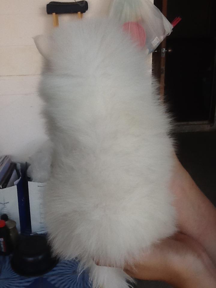 น้องปอมขาวเพศเมียสีขาวจั๊วหน้าหมี
