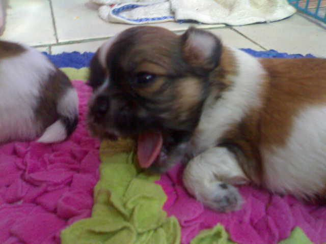 +^+ รูปที่ 3. เพศผู้ตัวเล็กสุดๆมาร์คกิ้งสวยมากๆ อนาคตหูอาจจะตั้งเหมือนชิวาวาน่ะค่ะ++