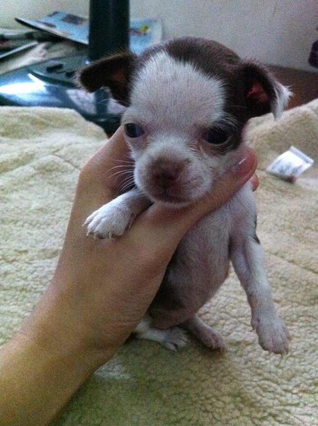 น้องคาปูชิโน่ ชิวาวาขนสั้น สีขาว-ช๊อค เพศผู้ ราคา 7500