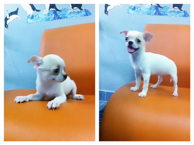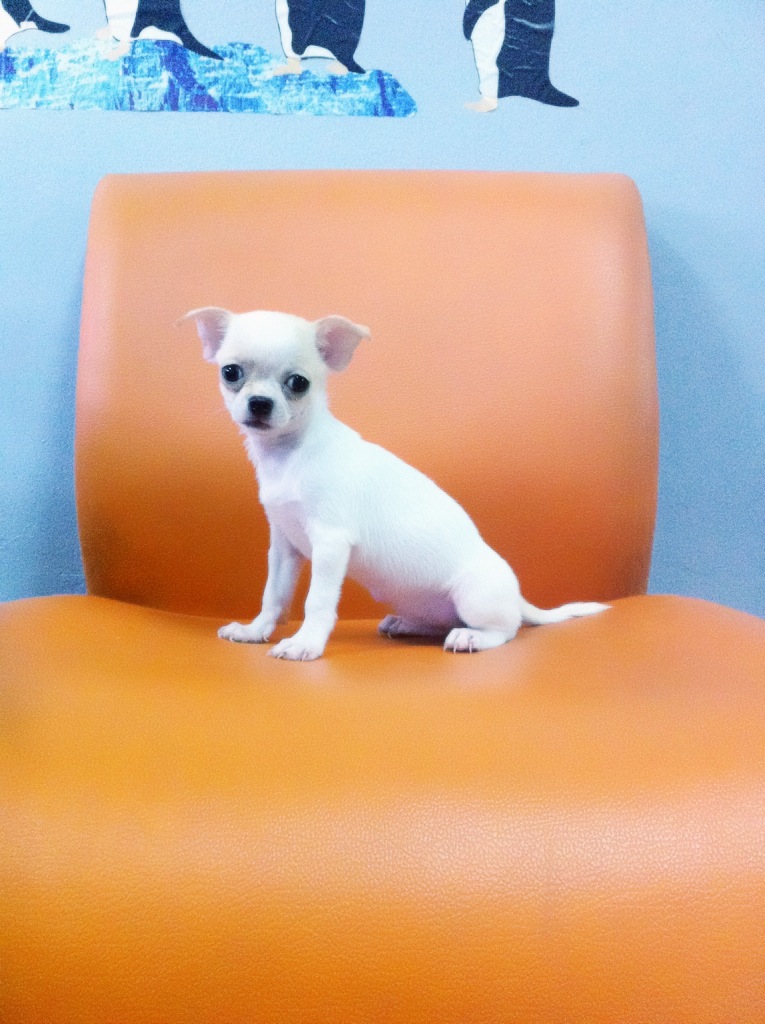 ชิวาวาขนสั้นอายุสองเดือนสีขาวน่ารัก แข็งแรง ไซด์เล็ก