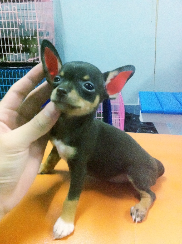 ลูกสุนัขพันธู์ ชิวาวา ขนสั้น เพศเมีย สีช๊อคแทน น่ารัก ขนาดจิ๋ว ทานเก่งครับ