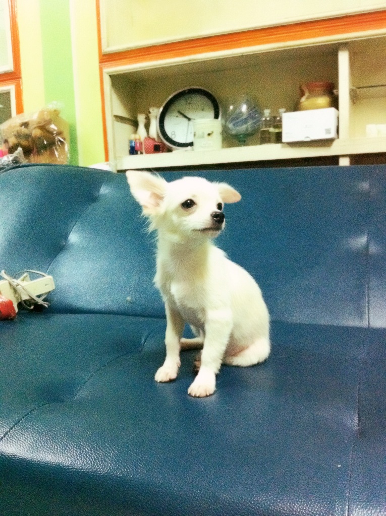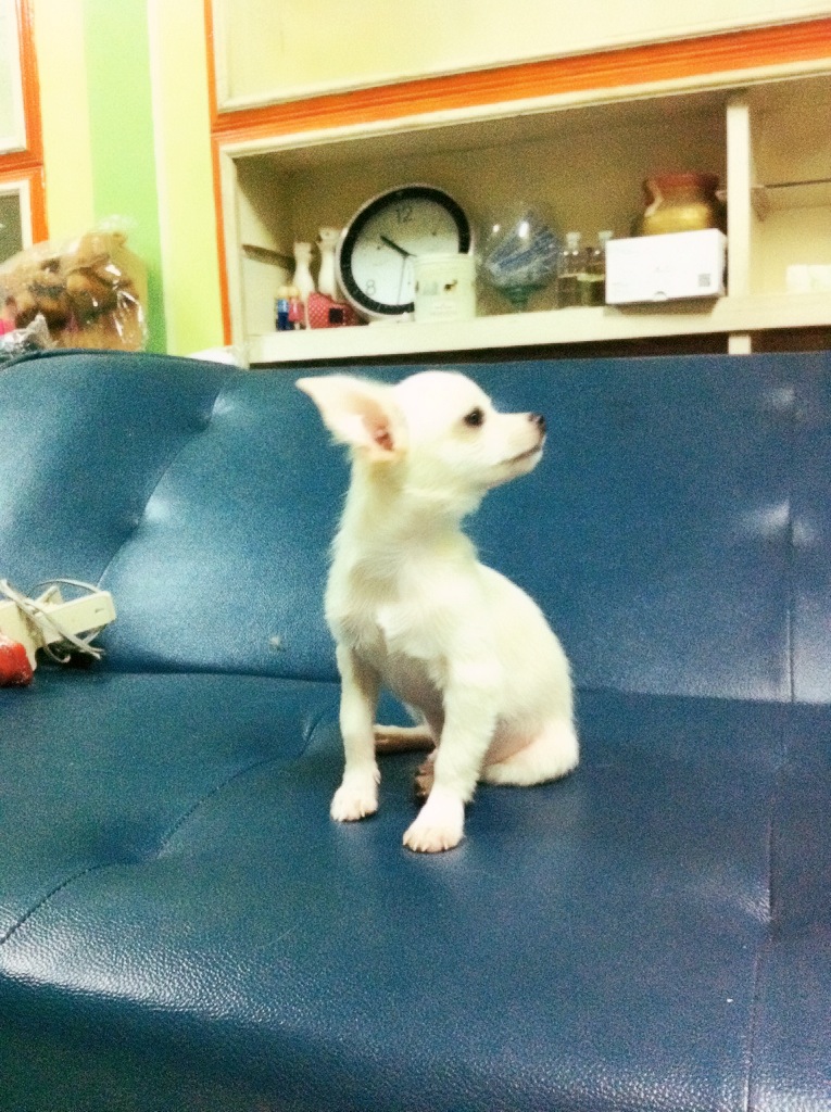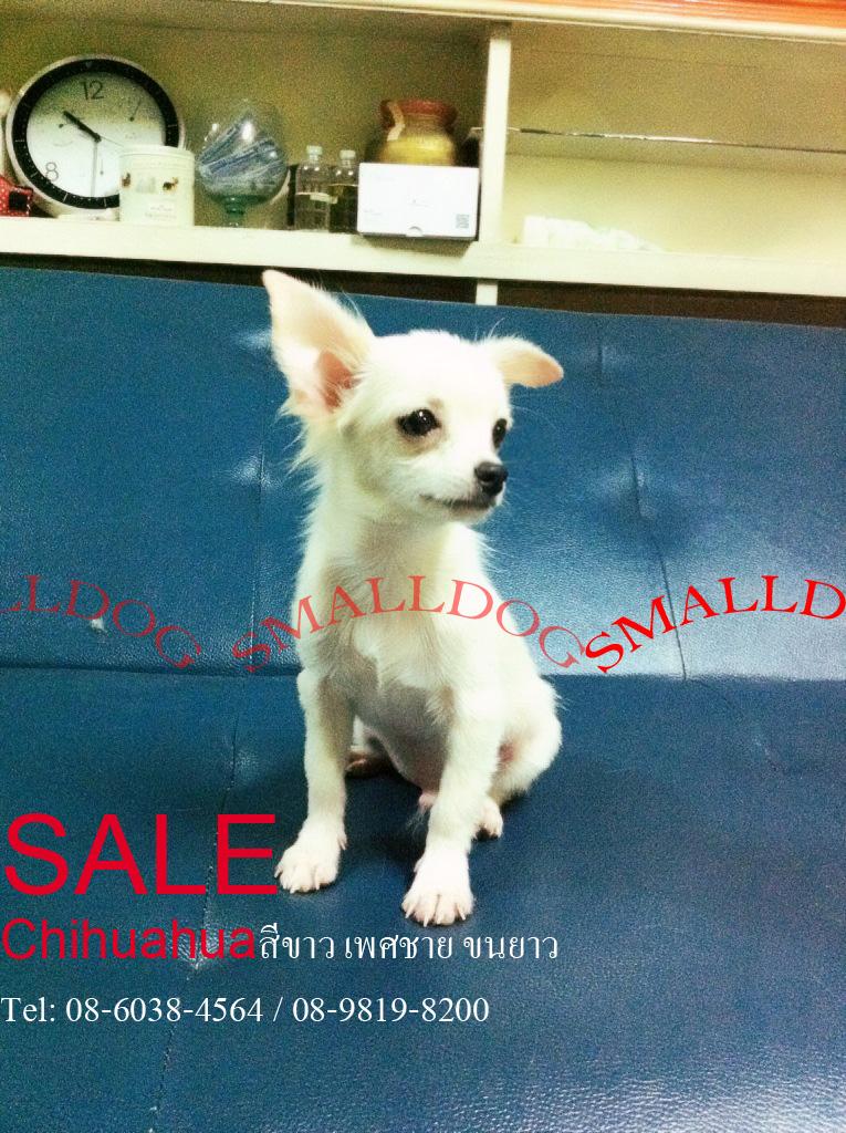 จำหน่ายชิวาวาขนยาวสีขาวล้วนเพศผู้ราคากันเองครับ