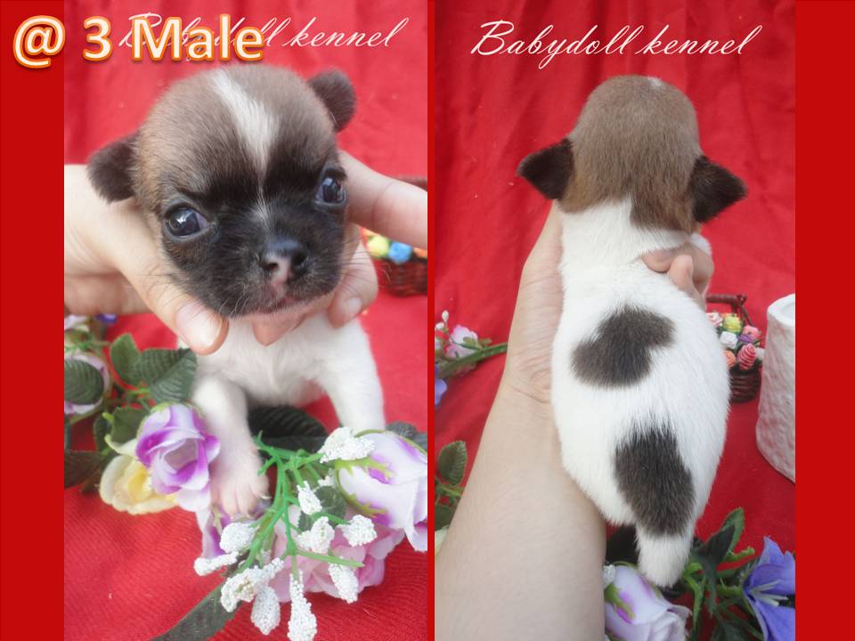 เปิดจอง@3 ชิวาวาขนสั้นเพศผู้ สีขาวแต้มน้ำตาลเข้ม ไซส์กลางๆค่อนข้างเกือบเล็ก ประมาณ2โล ราคา 6,500บาท โตขึ้น สีขนที่หน้าจะผลัดเป็นสีที่อ่อนลงสีน้ำตาลส้ม เกิด 19เมษายน สามารถรับน้องได้สิ้นเดือนค่ะ ก่อนส่งวัคซีน1เข็ม