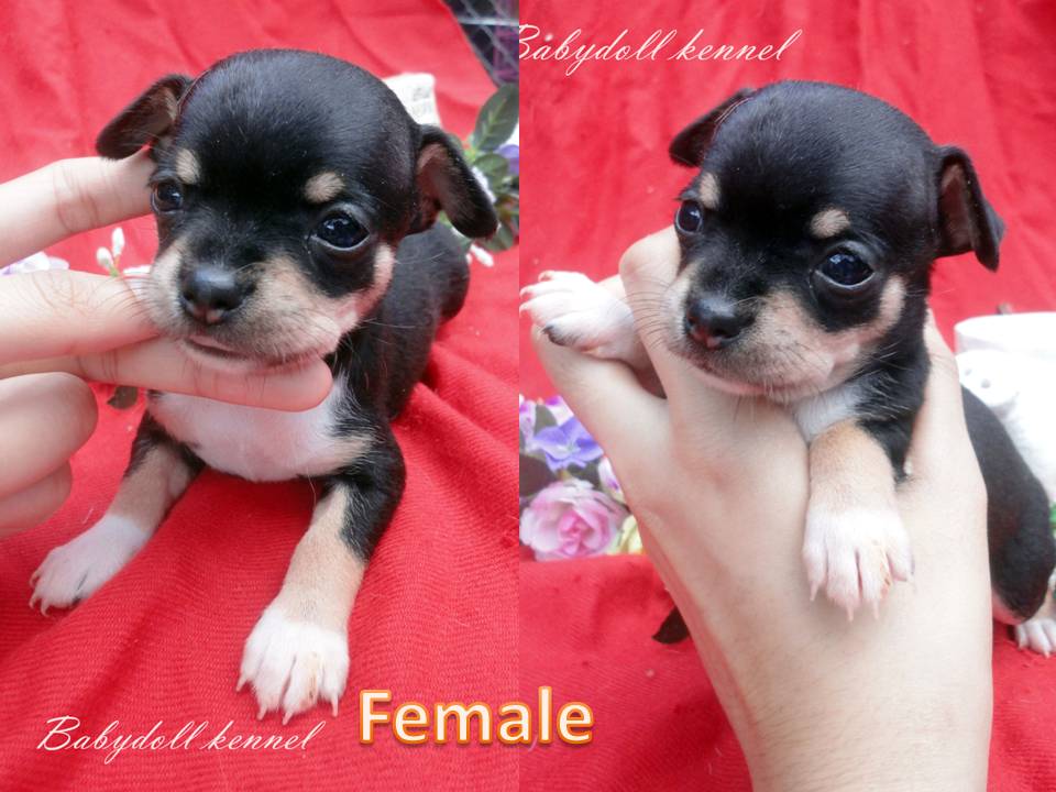 ชิวาวาขนสั้นเพศเมีย สีแบล็คแทนมีคิ้ว Babydollkennel โคราชนัดรับกทม