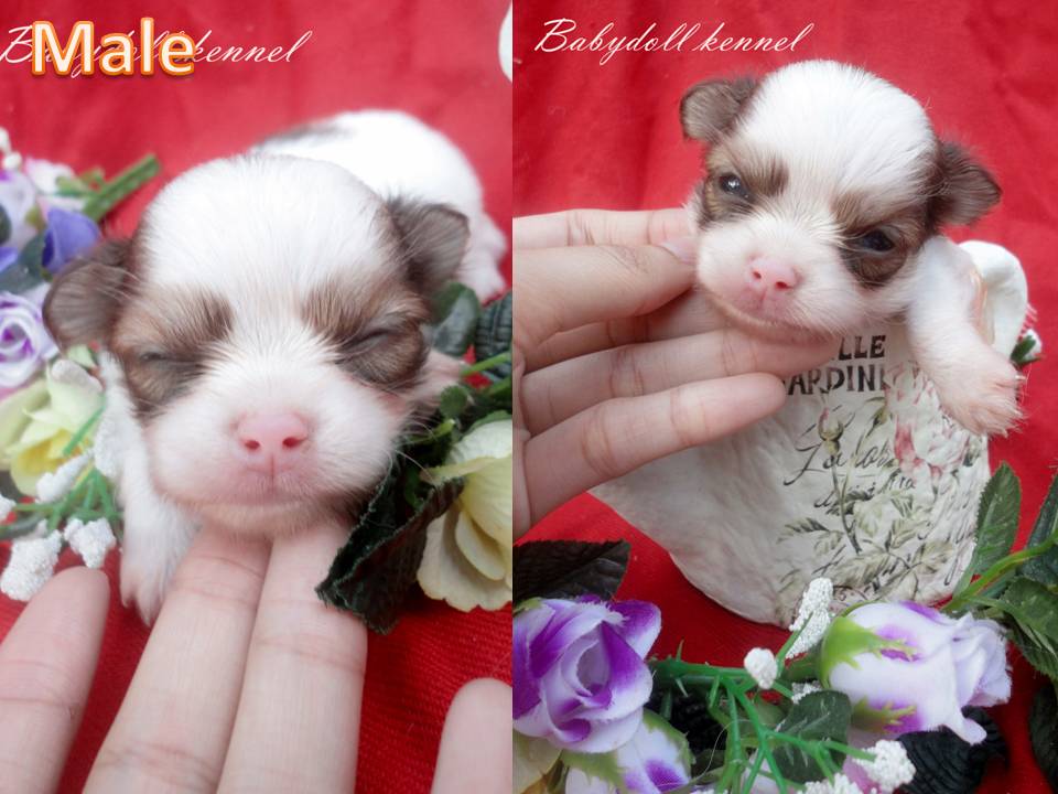 เปิดจอง น้องช็อคกี้ สุดหล่อ ชิวาวาขนยาวแฟนซีขาวช็อค จมูกสีตับ(สีชมพู