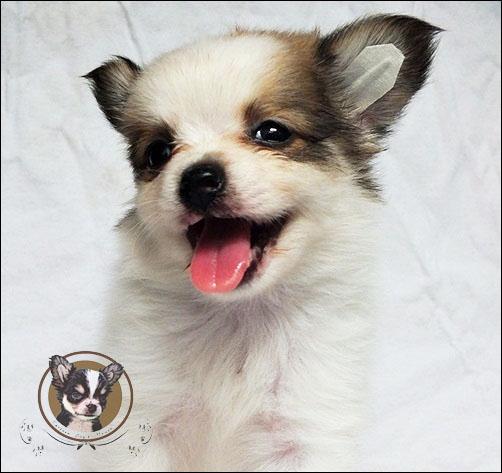 ชิวาวาเพศผู้ขนยาว สีขาวน้ำตาล น่ารักๆ ราคาเบาๆ ♥