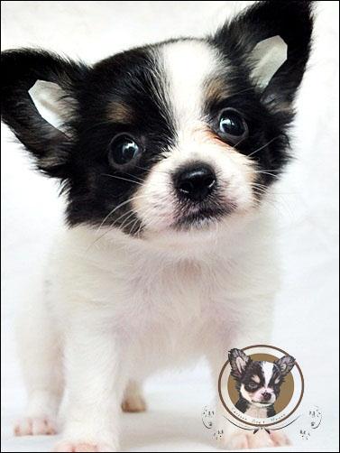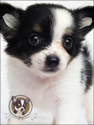 ชิวาวาเพศผู้ ขนยาวสี ขาว-ดำ มีคิ้ว