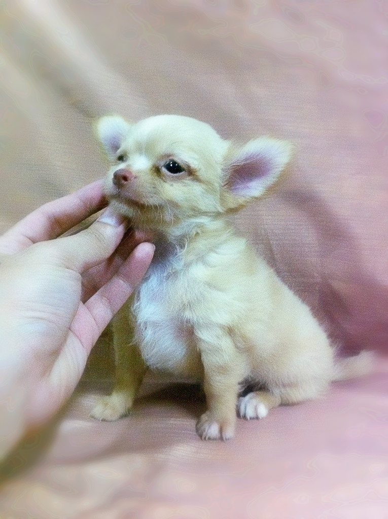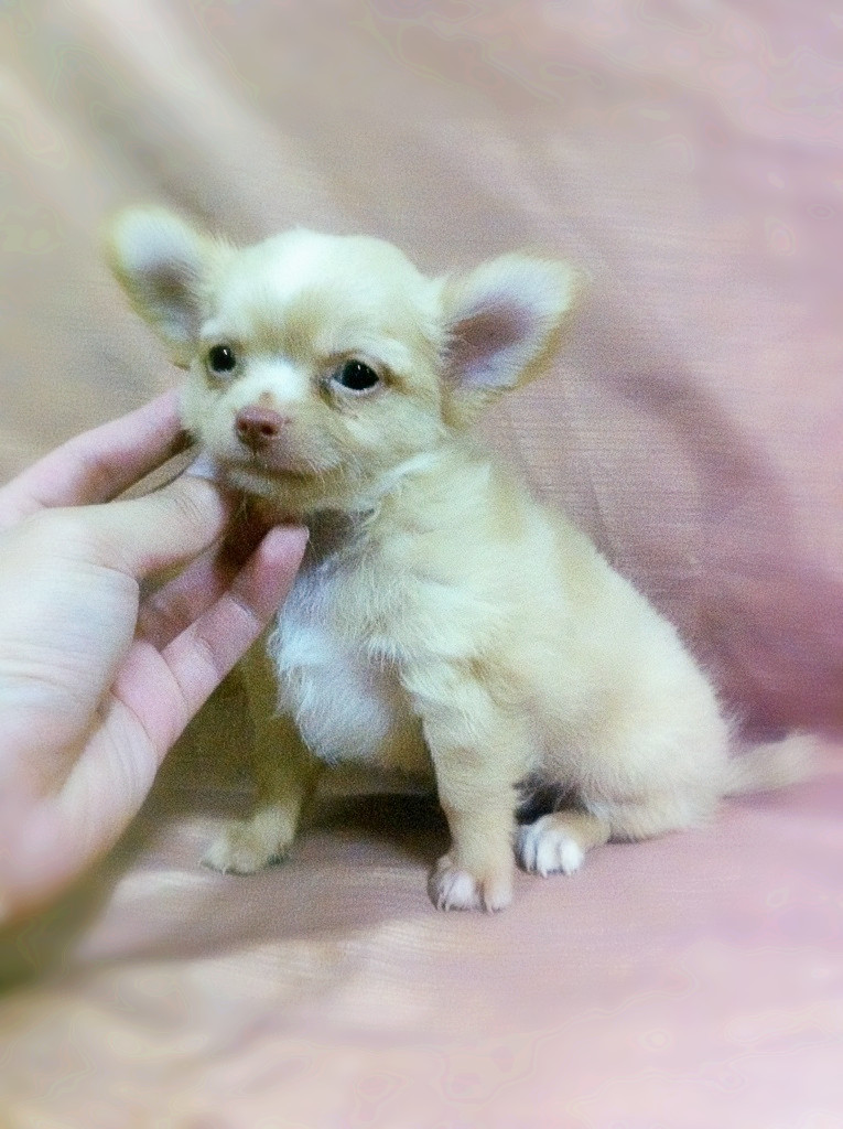 ชิวาวาขนยาวสีครีมเพศชายไซด์เล็กฟอร์มสายไต้หวันราคาไม่แพง