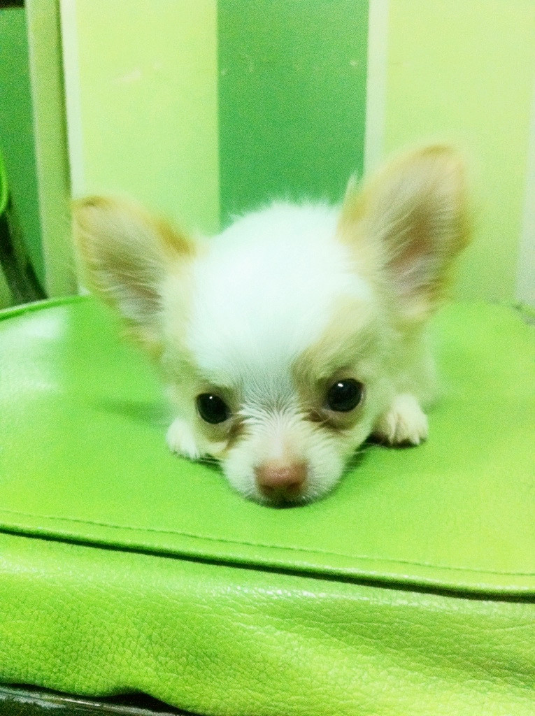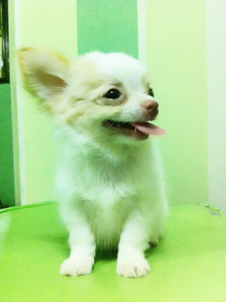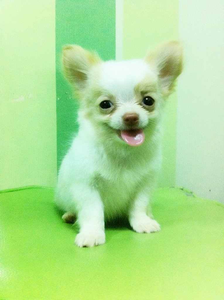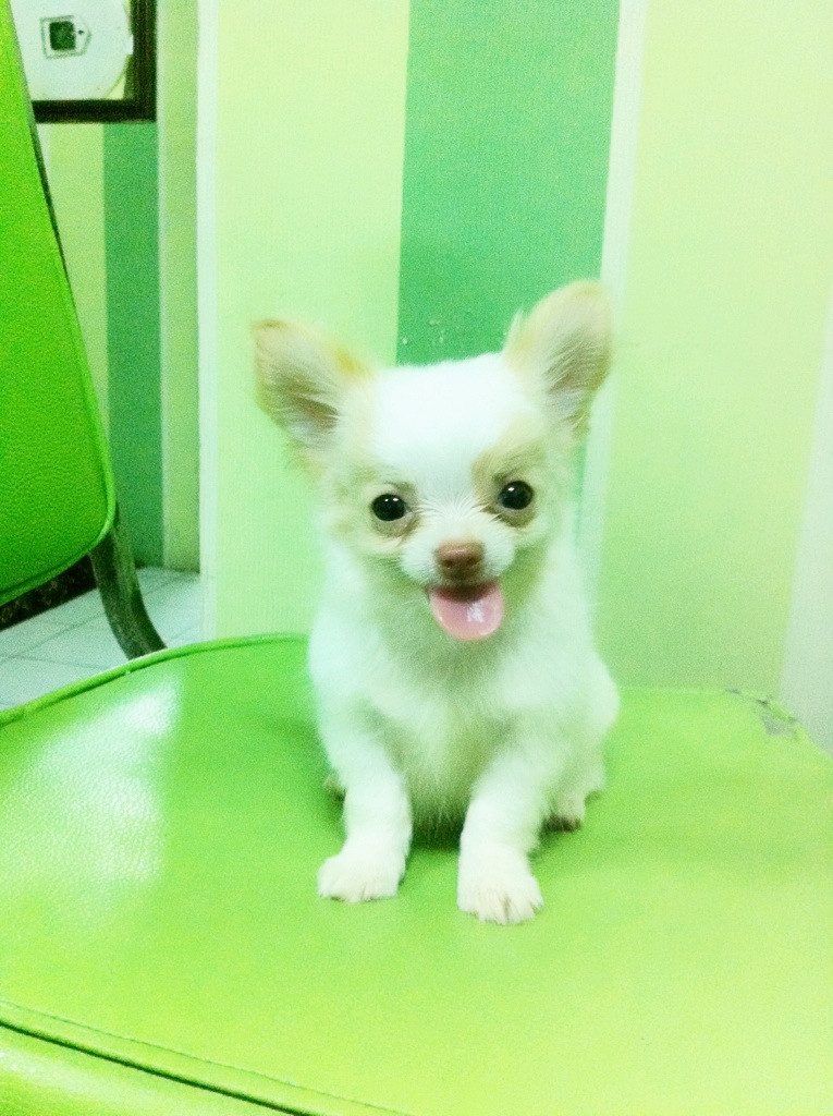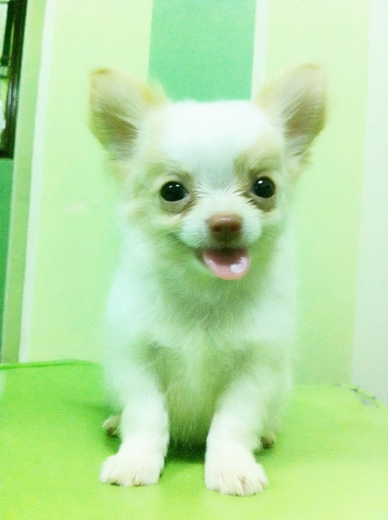 ชิวาว่าเพศผู้ขนยาวสีขาวครีมไซด์เล็กฟอร์มสวยราคาย่อมเยาว์