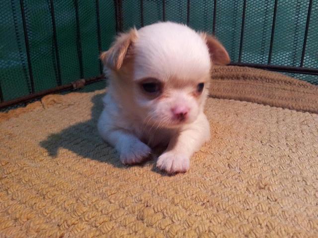 น้องซูกัสชิวาวขนยาว เพศผู้สีขาวน้ำตาล