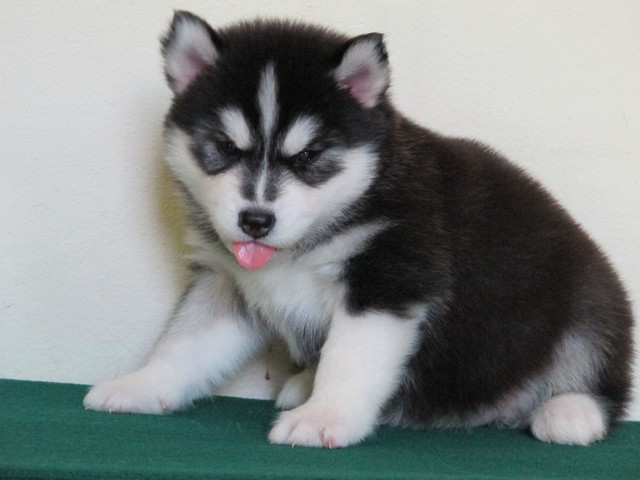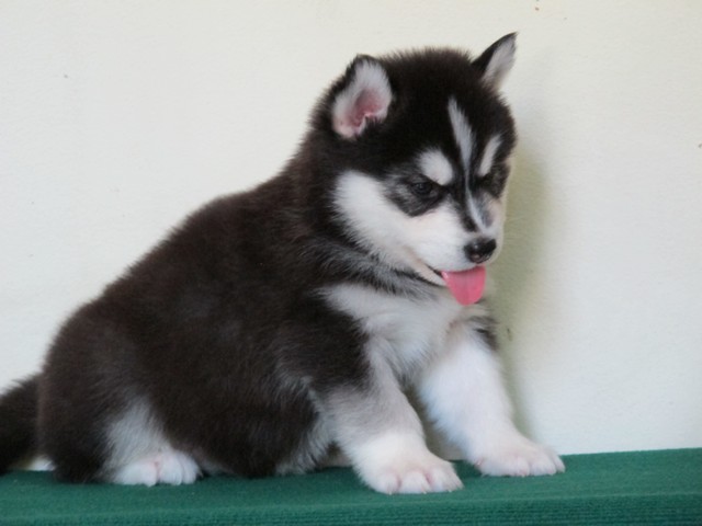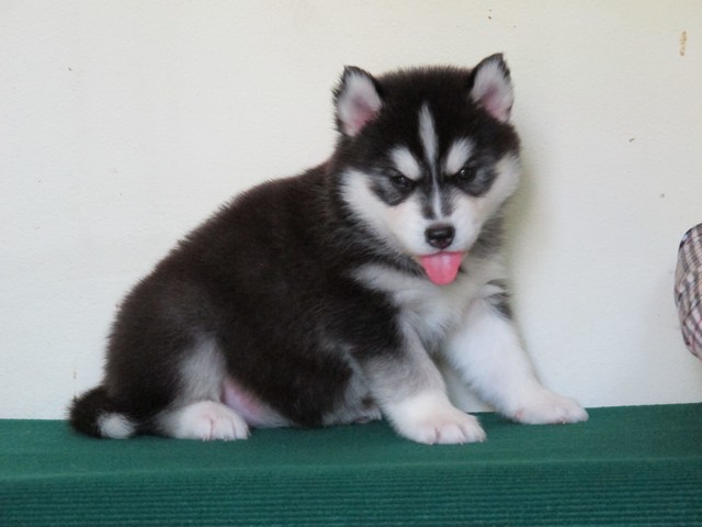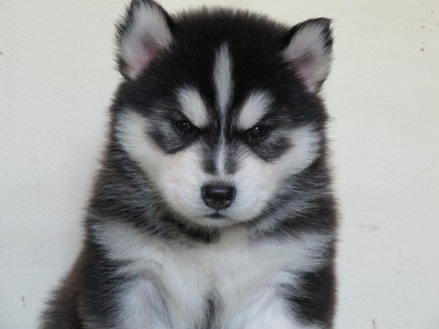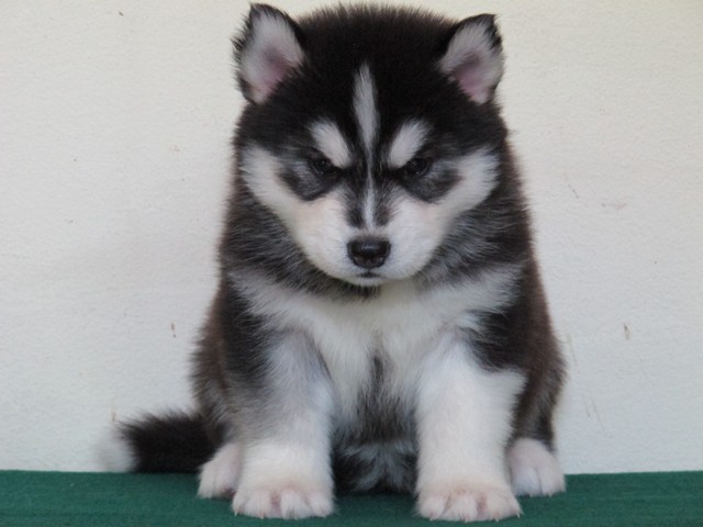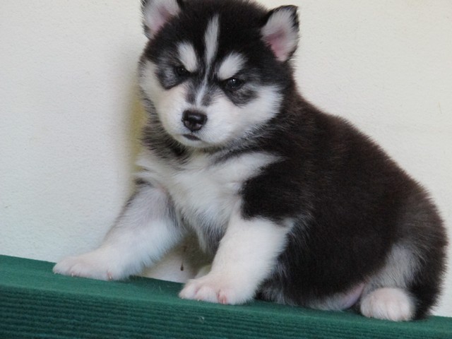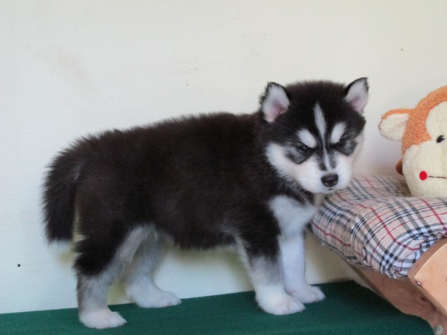 จำหน่ายลูกไซบีเรียนตัวเมีย อายุ 33 วัน เกรด คุณภาพ มีใบเพด สายเลือดดี ขนวูลี่ โครงสร้างใหญ่ สีขาว ดำ รับประกันความสวย น้องหมาอยู่เชียงใหม่
