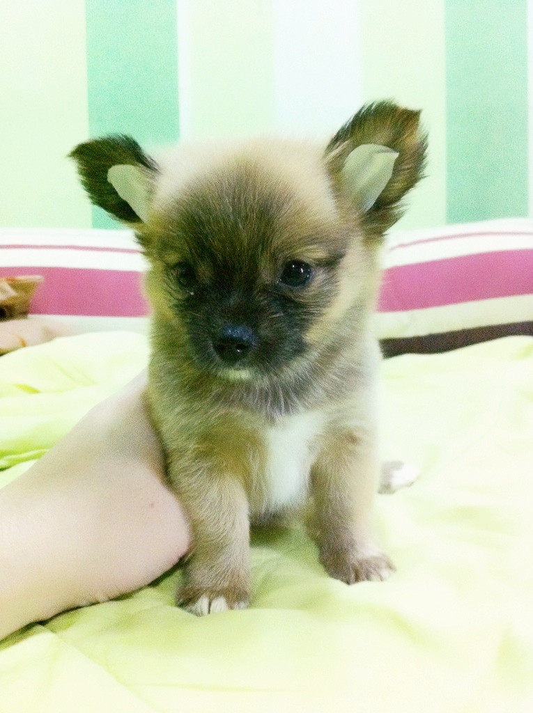 ชิวาวาขนยาว สีขาวน้ำตาล เทา เพศชาย ฟอร์มสวย สีสวย ไม่ผิดหวังแน่นอน ไซด์เล็กจิ๋ว อายุ 2 เดือน วัคซีนและถ่ายพยาธิแล้ว น่ารัก ฟอร์มสวย น่าเลี้ยง น่ากอด สีสวย
