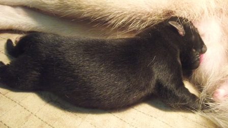 จากการบรีดของ Chanthaburi dogs farm ลูกสุนัข โครงสร้างใหญ่ กระโหลกใหญ่ ขาเท้าใหญ่ ตาสีฟ้าสองข้าง อุ้งเท้าสีดำ ภาพจากรูปอายุเพียงแค่ 16 วันเท่านั้น