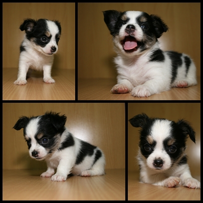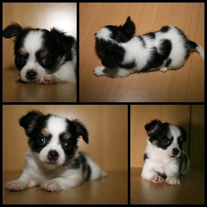 น้องชิวาวาเพศเมียขนยาวตัวนี้ขนแน่นมาก สีขาวดำ มีแต้มสีน้ำตาลคล้ายมีสี่ตา บนลำตัวมีแต้มสีดำลายคล้ายวัวนม เกิดเมื่อวันที่ 2-5-2555 อารมณ์ดี ขี้เล่นมาก สุขภาพแข็งแรง ราคา 7500 บาท ได้ไปเลี้ยงรับรองไม่ผิดหวัง