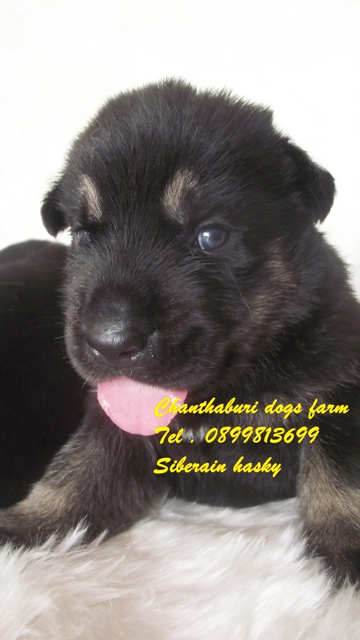 จากการบรีดของ Chanthaburi dogs farm ลูกสุนัข โครงสร้างใหญ่ กระโหลกใหญ่ ขาเท้าใหญ่ ตาสีฟ้าสองข้าง อุ้งเท้าสีดำ ภาพจากรูปอายุเพียงแค่ 16 วันเท่านั้น