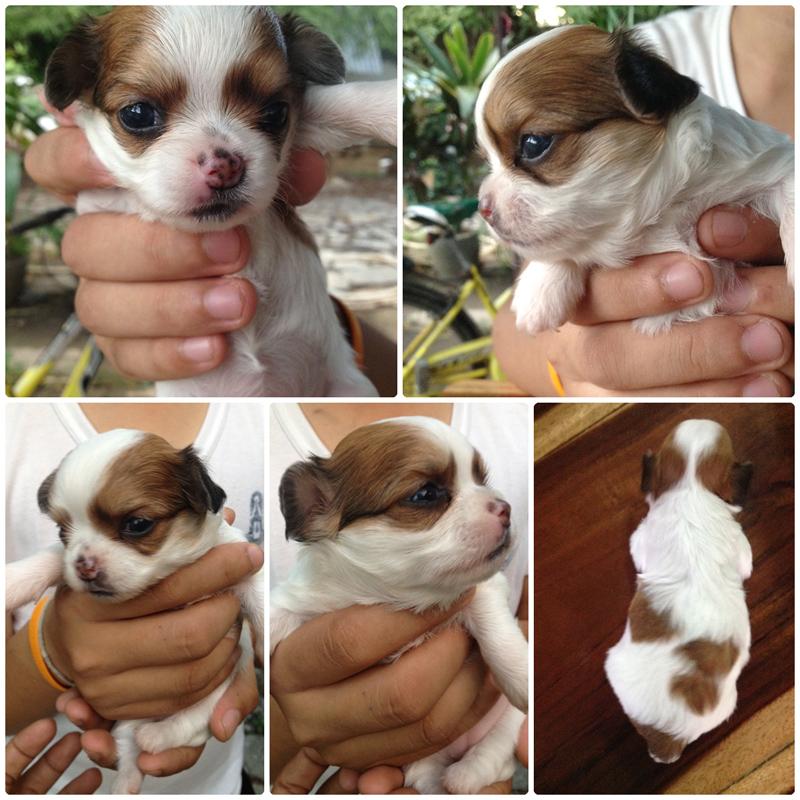 น้องชิวาวาเพศเมีย สีขาวน้ำตาล หูสั้น น่รักมากครับ เกิดเมื่อวันที่ 22-5-2555 ราคา8500 บาท สนใจติดต่อสอบถามได้ คนขายใจดีไม่ดุ