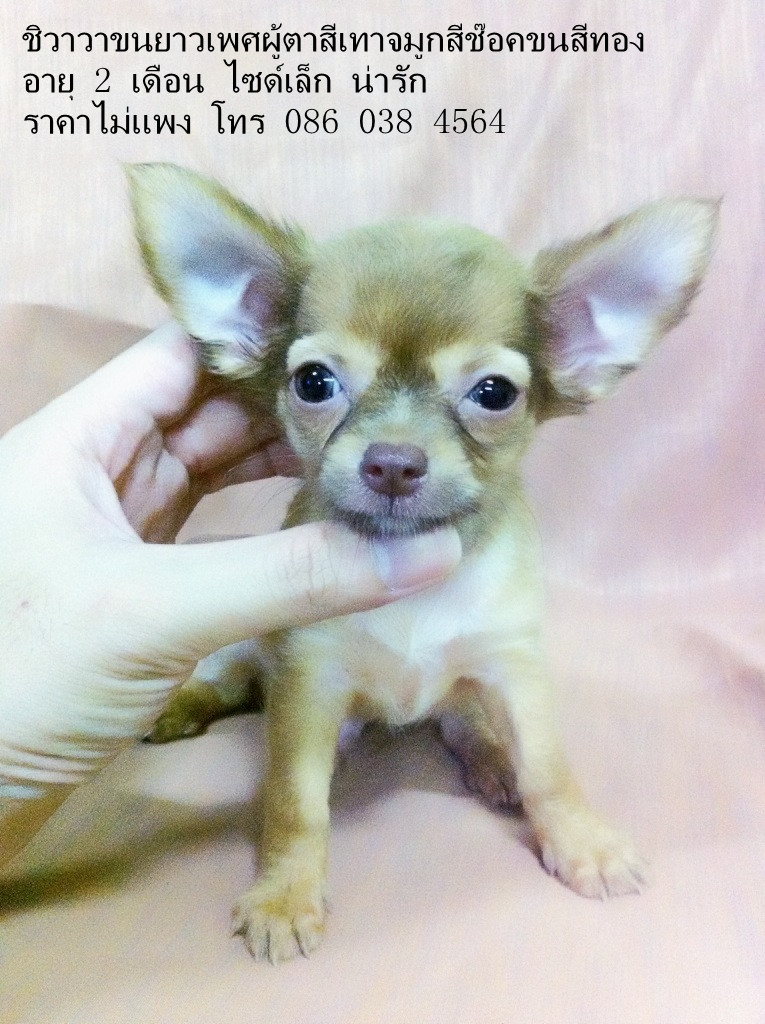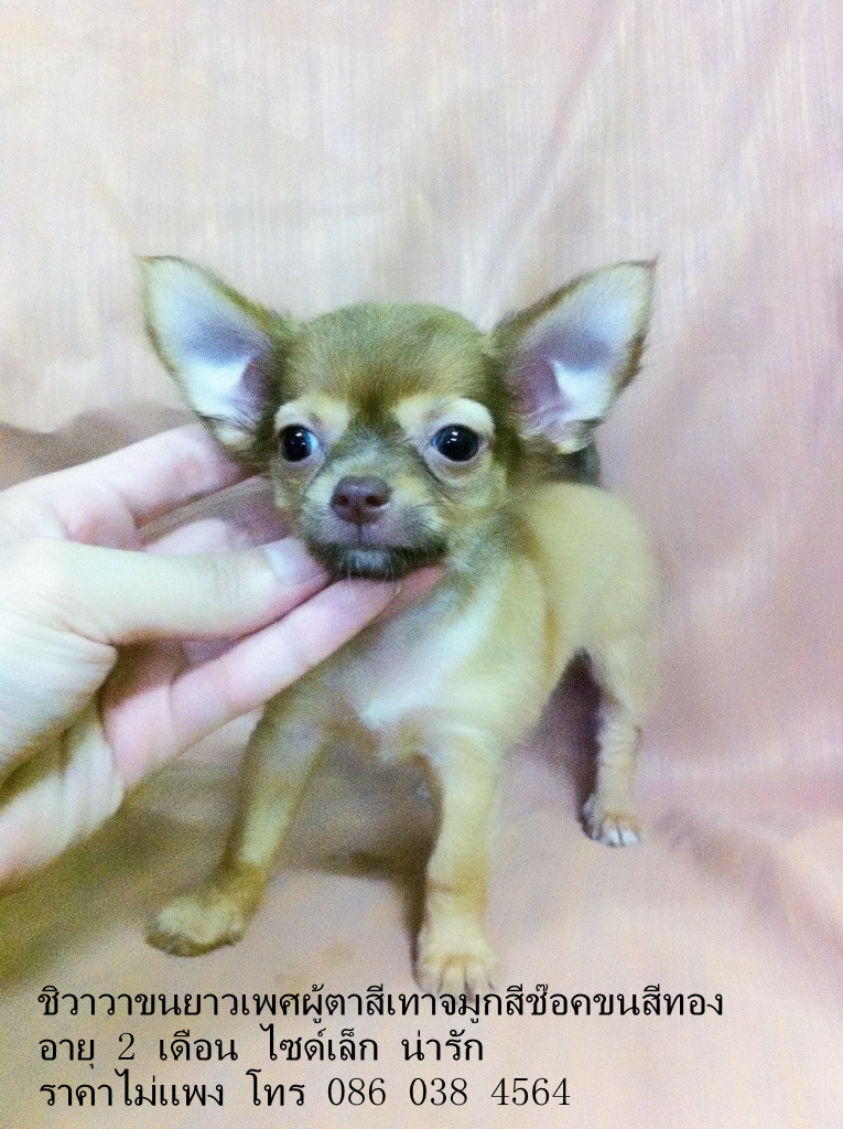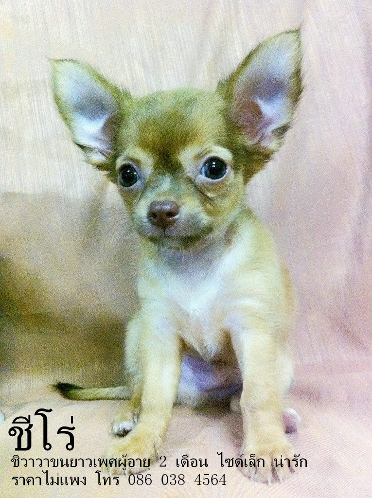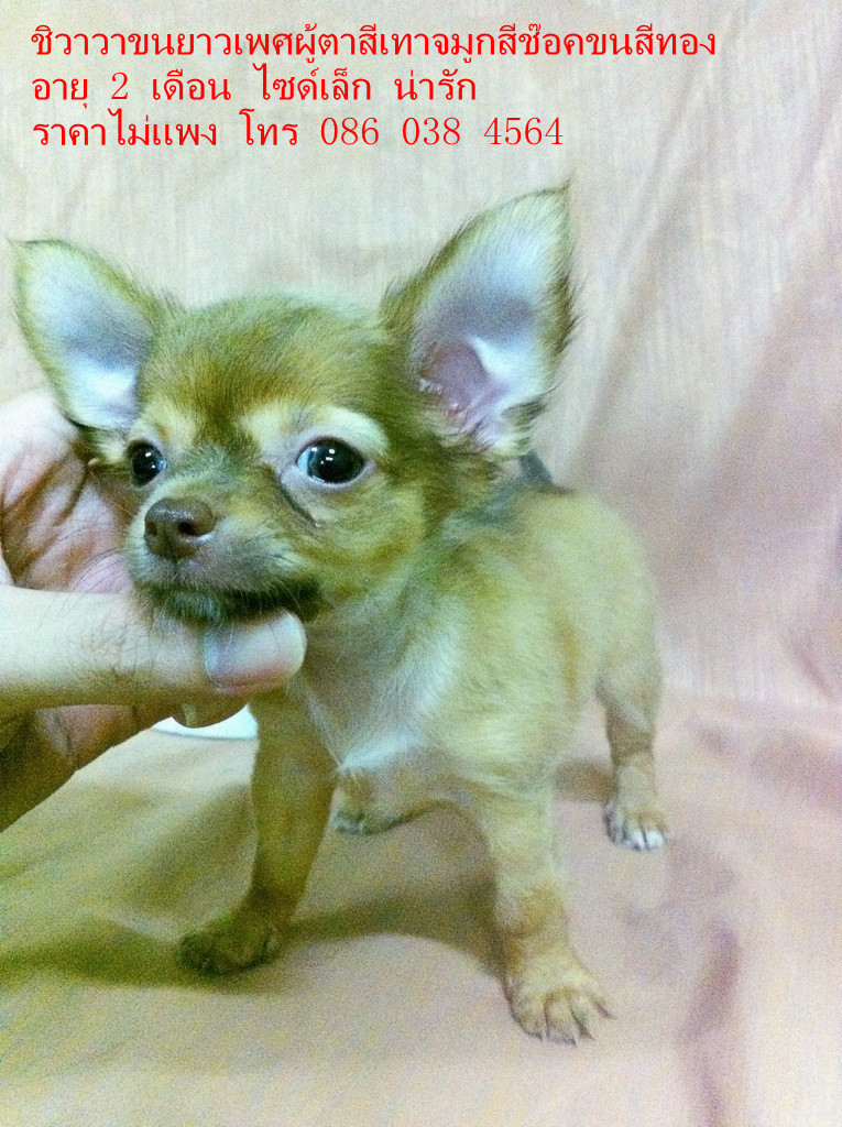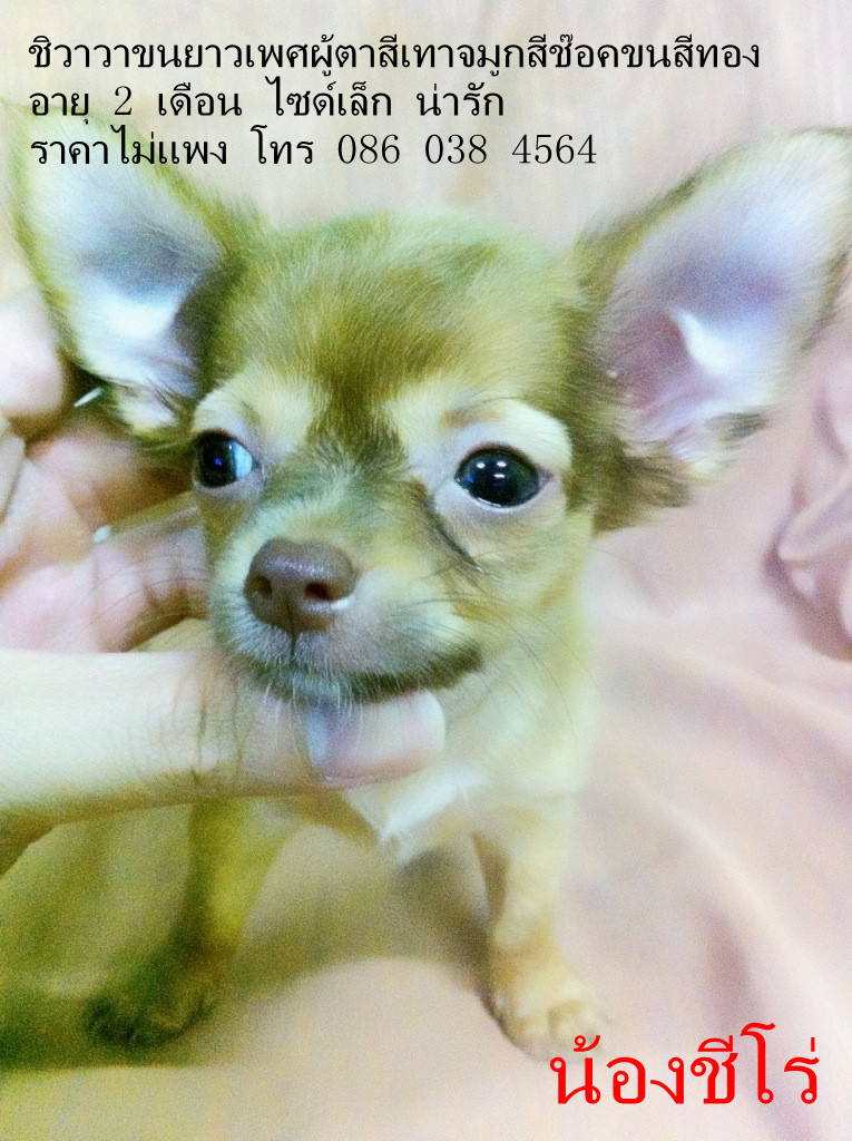 พบกับน้องชีโร่ชิวาวาเพศผู้ แบบขนยาว สีทอง ตาสีเทา จมูกสีช๊อค ไซด์เล็ก น่ารัก แข็งแรง อายุ 2 เดือน