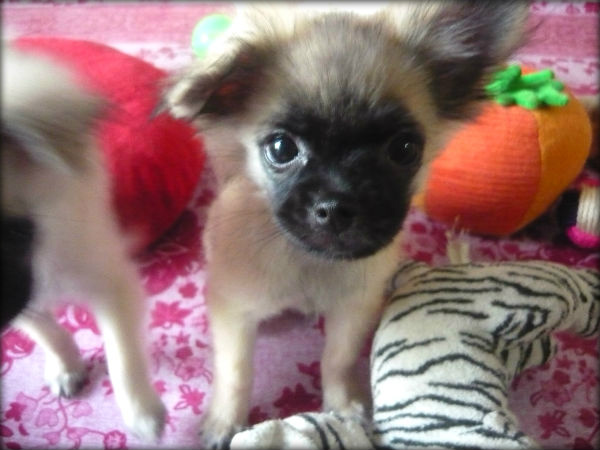 เด็กหญิงชิวาวาชนยาวอายุ 3เดือน ไซส์ปกติ หนัก 7ขีด(โตเต็มที่ไม่เกิน 2กิโล) กำลังผลัดขน น้องเป็นสุนัขบ้าน สะอาด แข็งแรง ร่าเริง กินเก่ง กินได้ทั้งอาหารเม็ดธรรมดา อาหารเม็ดแช่น้ำ แต่จะชอบอาหารเม็ดคลุกกับอาหารเปียก ขนมสุนัขประเภทสติ๊ก ทุกรส และนมวัวเป็นพิเศษ น้องขับถ่ายเป็นที่บนกระดาษหนังสือพิมพ์ น้องทำวัคซีน และถ่ายพยาธิแล้วค่ะ