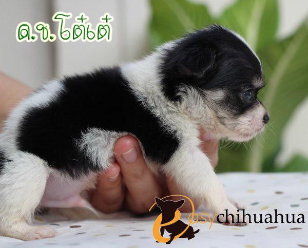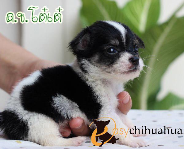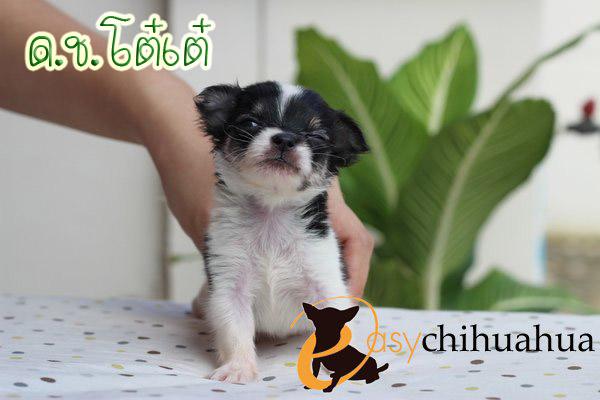 “โต๋เต๋” ด.ช. ชิวาวาสายไต้หวัน สีขาว-ดำ มีมาร์คมีคิ้ว ลายสวย โครงสร้างดี ซนแข็งแรง