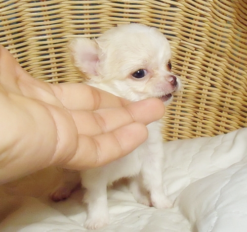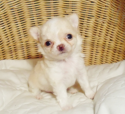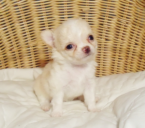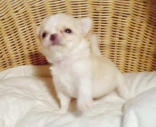 ขายน้องชิวาวาขนยาวเพศผู้ สีขาวครีม ไซค์เล็ก