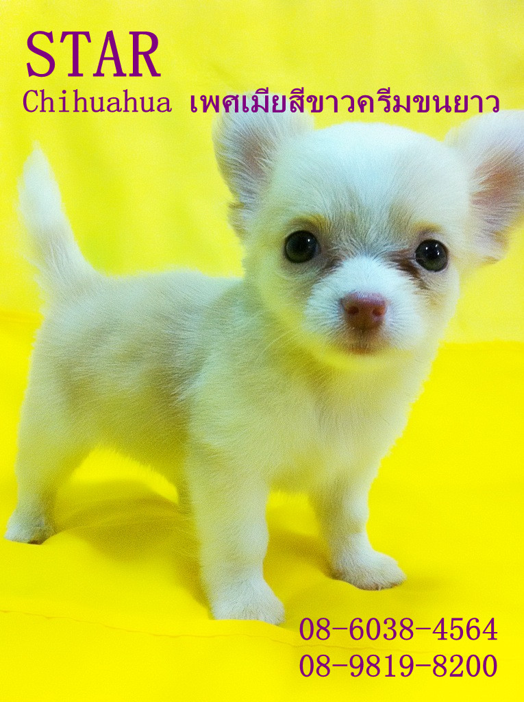 STAR ชิวาวาเพศเมียสีขาวครีมไซด์เล็กขนยาวราคากันเองจ้า