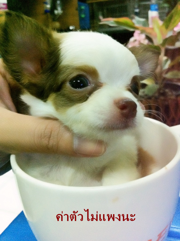 ชิวาวาขนยาวเพศชายสีขาวช๊อค T-CUP