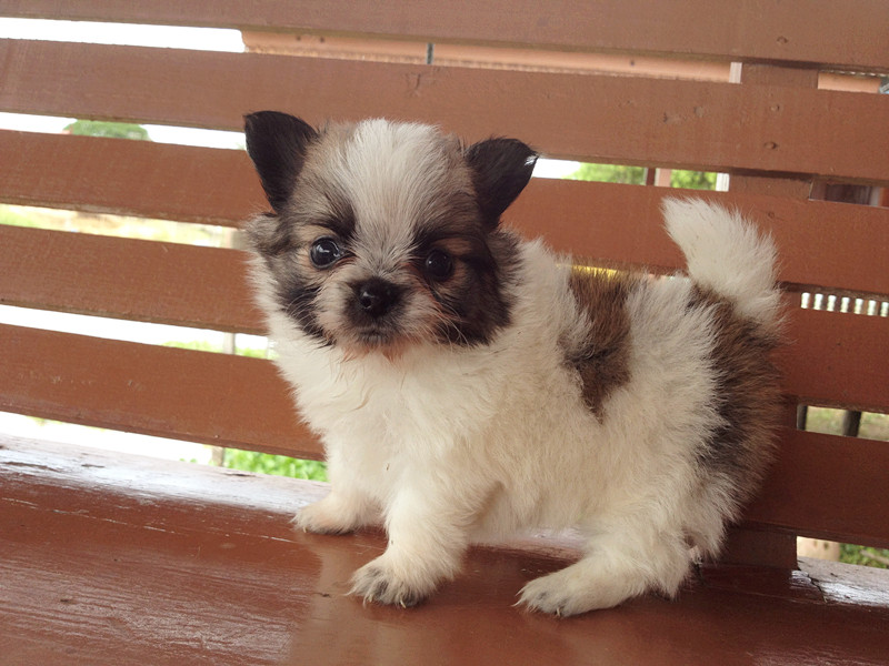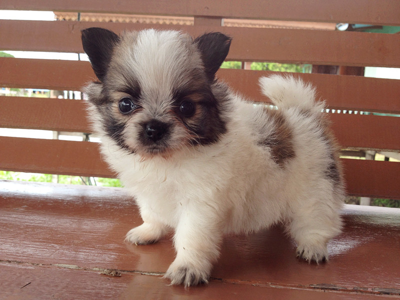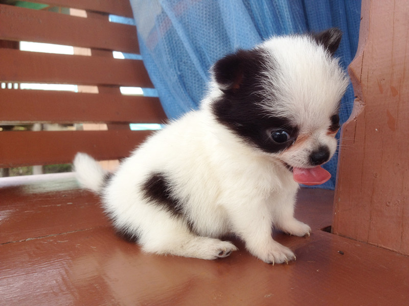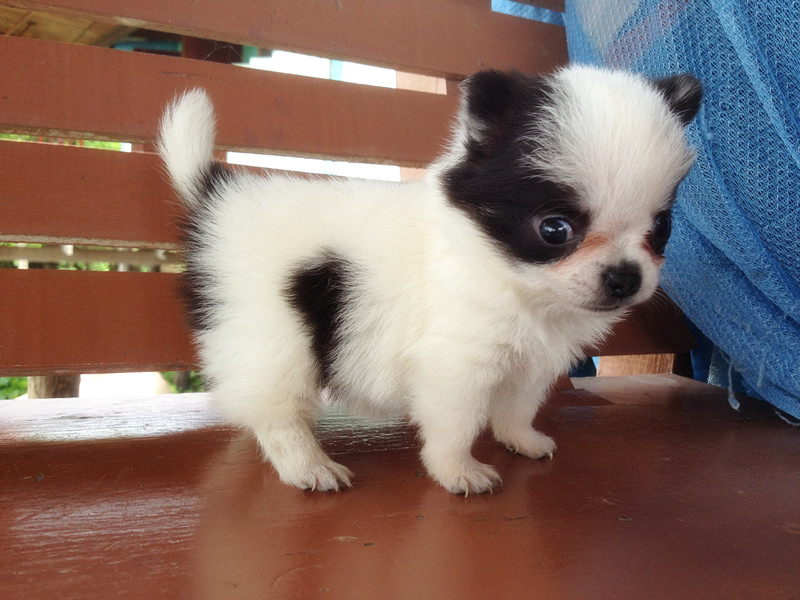 เป็นสีแฟนซี ขาวดำ 1 ตัว แล้วก็ ขาวน้ำตาล 1 ตัว ขนหนาแน่น สวย