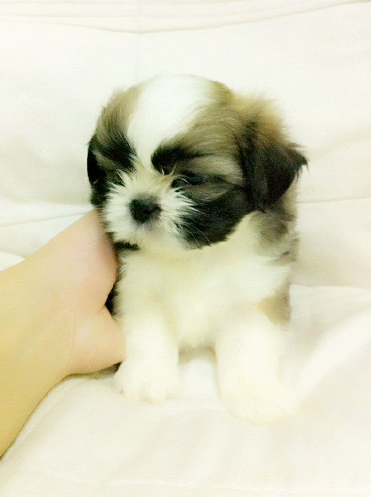 น้อง MELODY ชิสุห์เพศผู้ น่ารักสดใส สีขาว,เทา,น้ำตาลเข้ม สามสีสามตอน ไซด์ทอยส์มากมาย อายุ 43 วัน ราคาไม่แพง