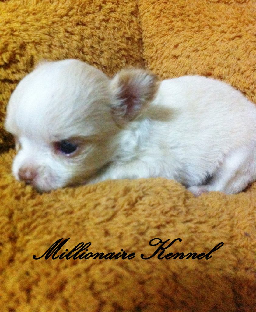 ลูกChihuahua HD!ขนยาว หัวAppleDome สีขาวครีม เพศเมีย จิ๊ดริีิ้ดมาก 8500THB