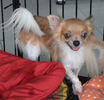 --ชิวาวาขนยาว เพศผู้ อายุ 1 ปี+ใบเพ็ดดีกรี ราคาพิเศษ 5,500 บาทค่ะ --