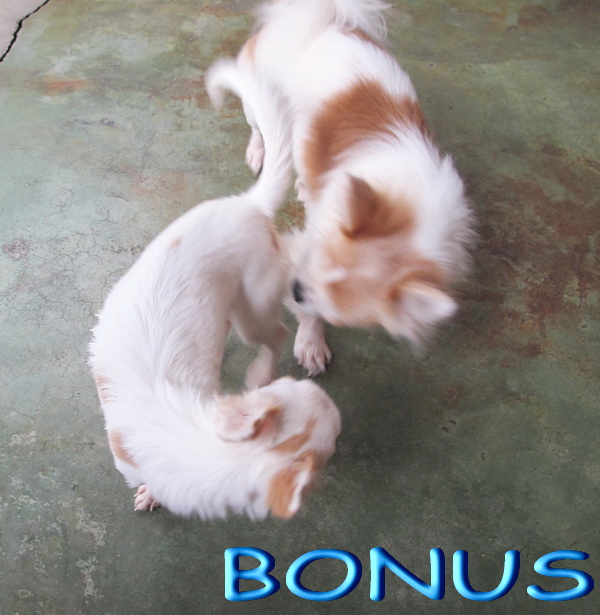 "โบนัส" เพศเมียขนยาวสีขาวน้ำตาล หัวกลมหน้าสั้นตาโตหวาน หน้าหวานน่ารัก นิสัยดีเป็นมิตร ไม่เห่า