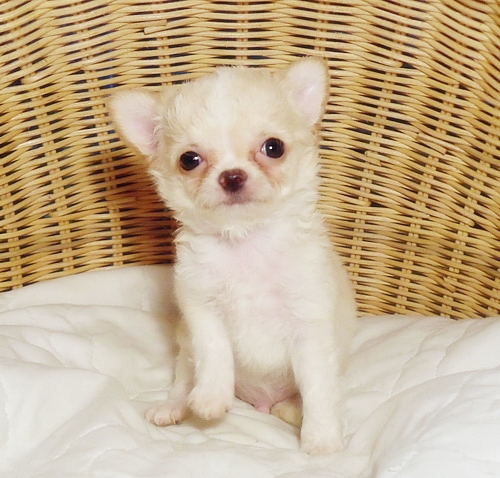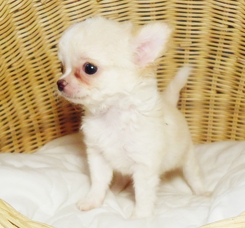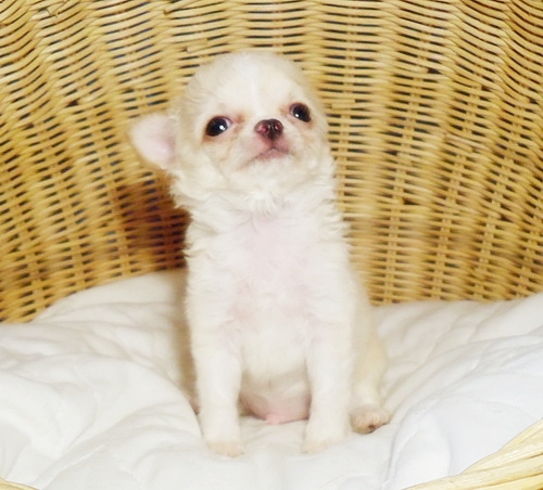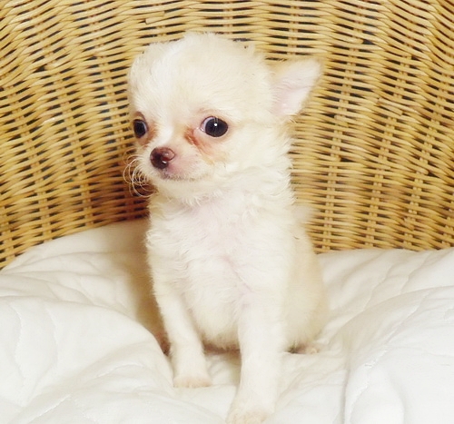 น้องโจอี้ ชิวาวาขนยาวเพศผู้สีขาวครีม สายเลือดไทยแชมป์ทั้งพ่อและแม่