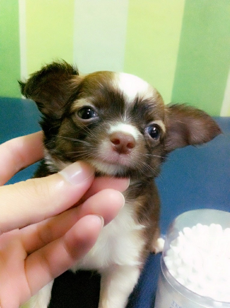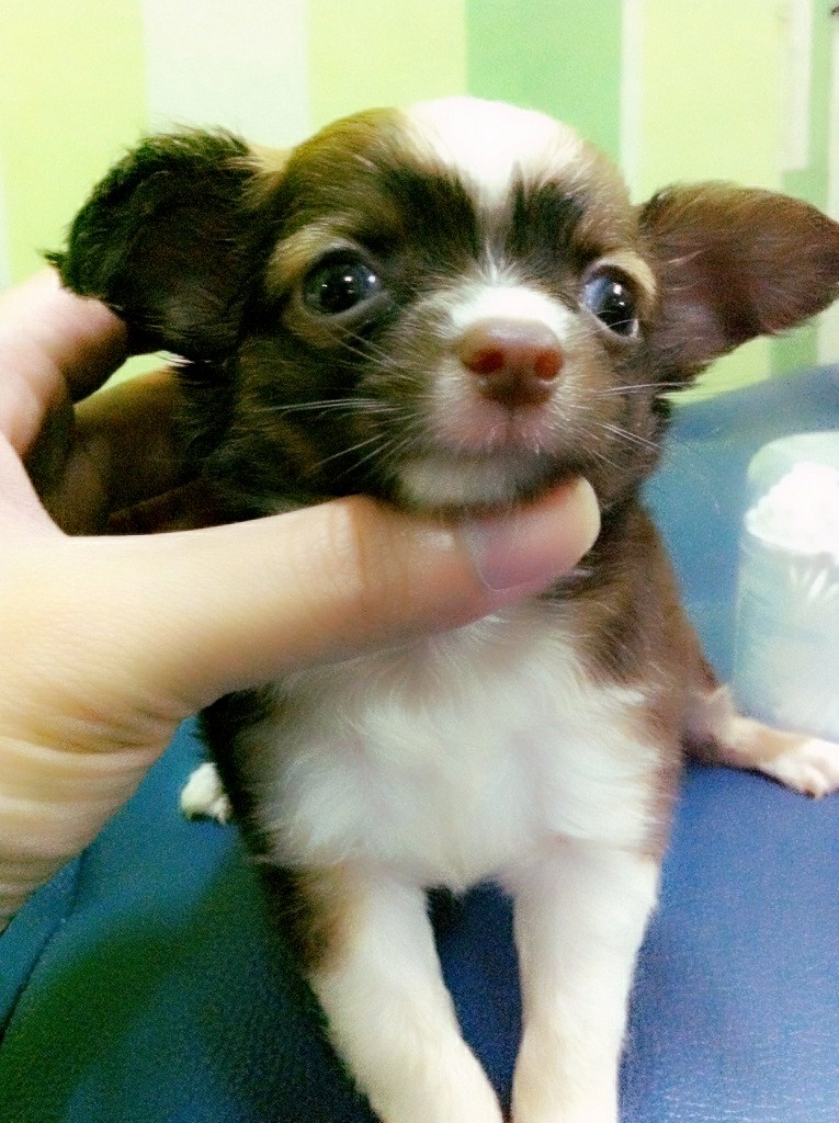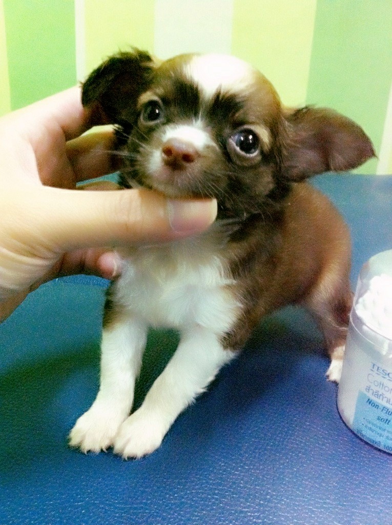 ชิวาวาขนยาวตระกูลช๊อคพันธุ์เล็กน่ารักเพศผู้พร้อมย้ายบ้านราคาไม่แพง
