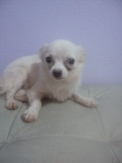 [b]ชิวาวาหนุ่มน้อยขนยาว ใต้หวัน สีขาวล้วน จมูกสีช็อค T-CUP พร้อมใบเพ็ด 9500.-