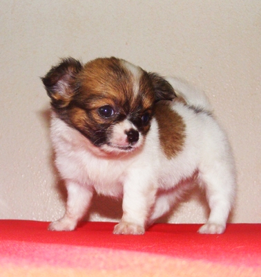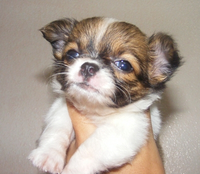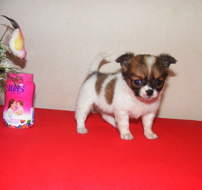 ชิวาวาขนยาว เพศเมีย แฟนซี ขาว-น้ำตาล ช็อค หัวโหนกสวย